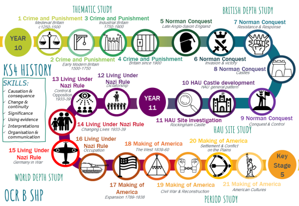 If you choose to study History at KS4 we follow the OCR History B Schools History Project Full Course (J411)